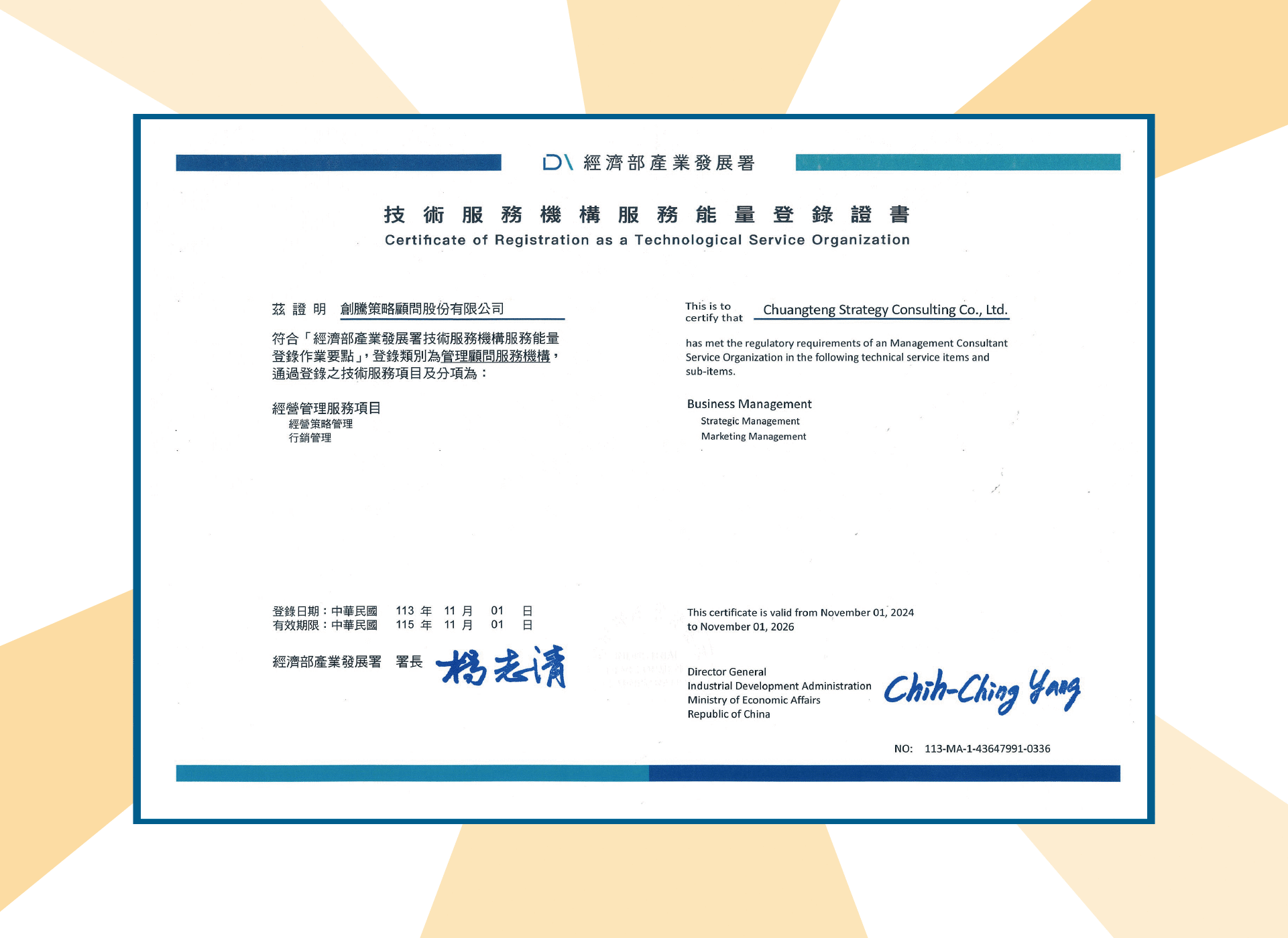 本公司為經濟部產業發展署(原工業局)「技術服務能量登錄」合格機構,